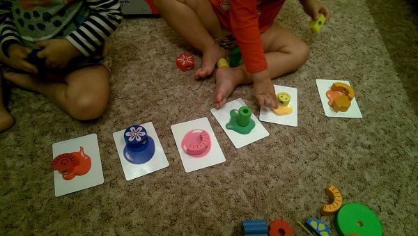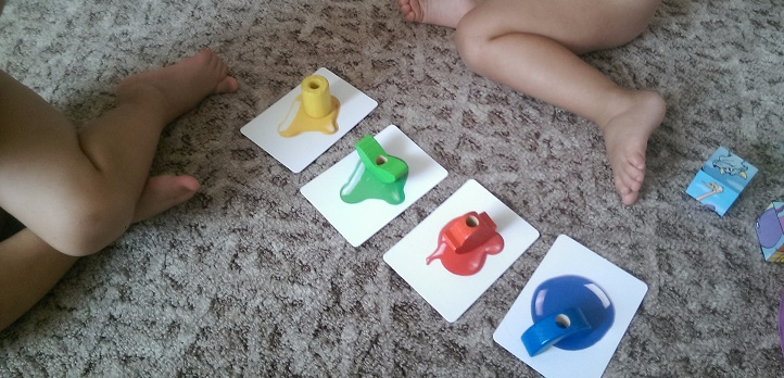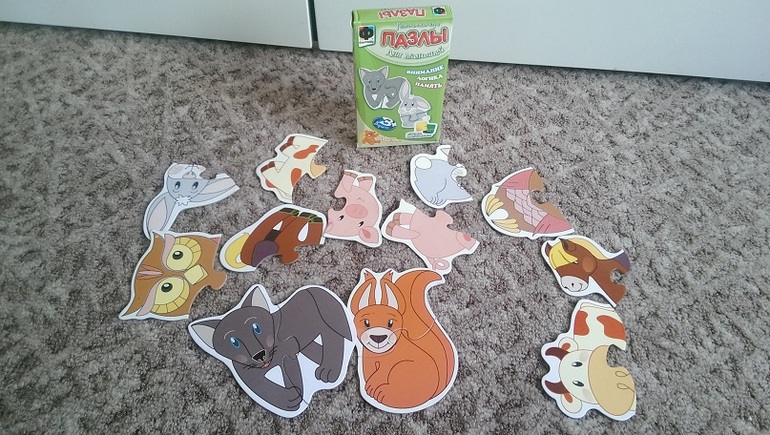 Пазлы. Из двух частей начали собирать в 1,8, сразу же после того как получилось собрать напольную мозаику. К нам приехали новые пазлы из большего количества частей, еще не опробовали. Хотя я предлагала в развивающем центре пазлы из 3 деталей, легко собирали. Еще вожу детей в Монтессори центр 2 раза в неделю. Мне очень нравится, результаты занятий очень заметны.