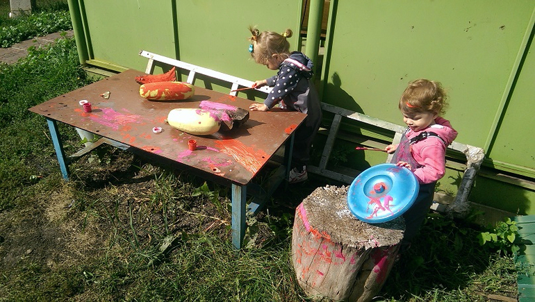 В 1,8 дети стали сами просить рисовать или лепить, несут атрибуты мне, что бы я приготовила все для игры. У нас очень много разных творческих пособий ( о них в следующем посте), поэтому здесь все легко, выдаю заготовки и дети занимаются, иногда мне приходится помогать. Рисуют акварелью, пастелью, восковыми мелками, совсем мало пальчиковыми красками.![]()