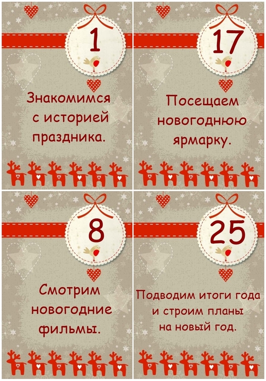 Я составила список дел, которые я бы хотела сделать в течение декабря, с учетом того, что я не просто человек, а мама годовалого ребенка. Дела вполне себе обыкновенные: украшаем, наряжаем, танцуем и поем, и т.д.