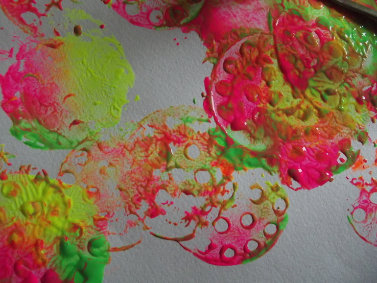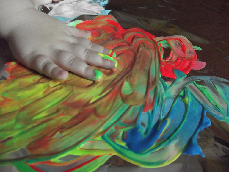 Сухое рисование в файле.В файл наливаем краски - пальчиковые,гуашь,заклеиваем скотчем.Рисуем по файлу.
