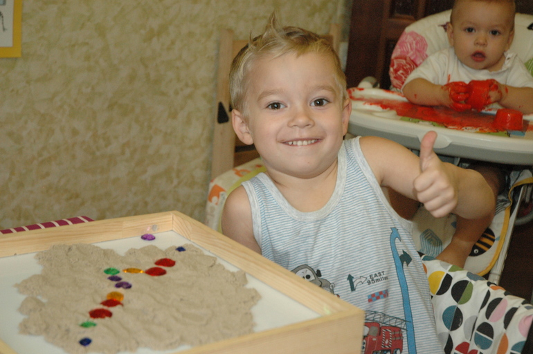 , но зато один позанимался, а вторая довольная на рисовалась от души... и даже на вкус попробовала...)))