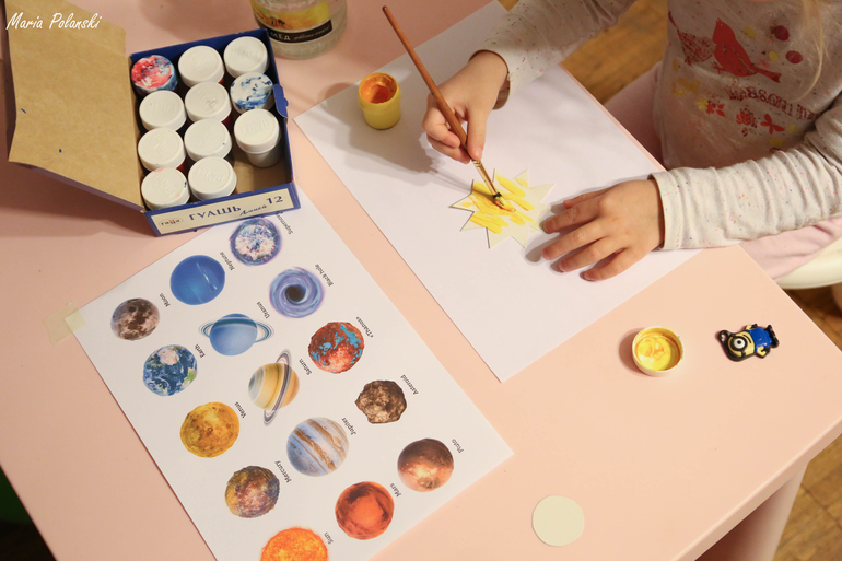 Методика Сесиль ЛупанЧто-то нам в последнее время нездоровится и мы так часто проводим все дни дома, что каждый раз, когда мы все-таки выходим на улицу, мне кажется, что там столько всего поменялось и я во все стороны, куда ни посмотри, давно не ходила) На прошлой домоседской неделе мы с Варей решили изучить космос.