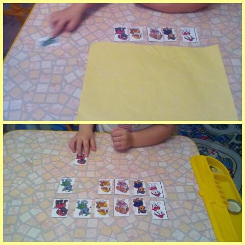 Игра представляет собой парные карточки на различную тематику. Перед началом игры ведущий перемешивает карточки и раскладывает перед малышом картинкой на показ. Малыш из всех предложенных карточек (их может быть и пять пар и больше, но начать лучше с трех, двух пар), должен составить пару, если сначала не получается, не отчаивайтесь малыш обязательно поймет, просто показывайте ему игру на своем примере.