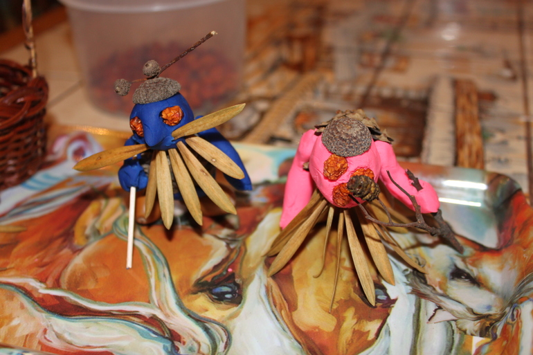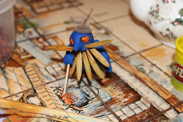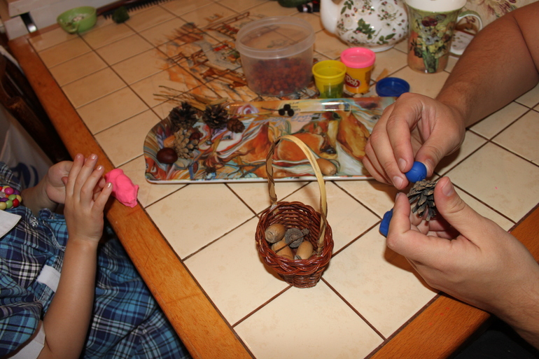 Был у нас и второй заход с сотворением гномиков (Ира сказала, что Ксюша своих гномиков хочет оставить в лесу, ну и нам тоже тогда надо). На этот раз использовали пластилин.
