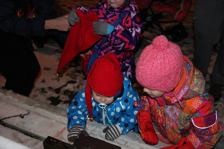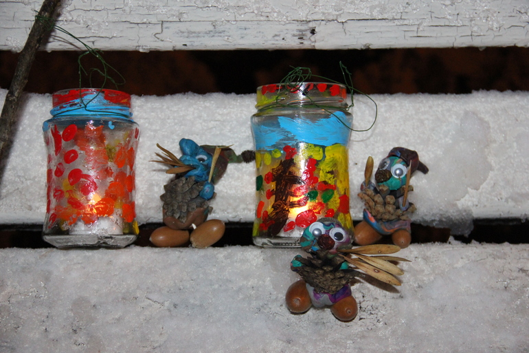 За этими занятиями подошло время праздника. Последний гном был раскрашен, мы выглянули в окошко посмотреть, какая погода, и обнаружили послание: