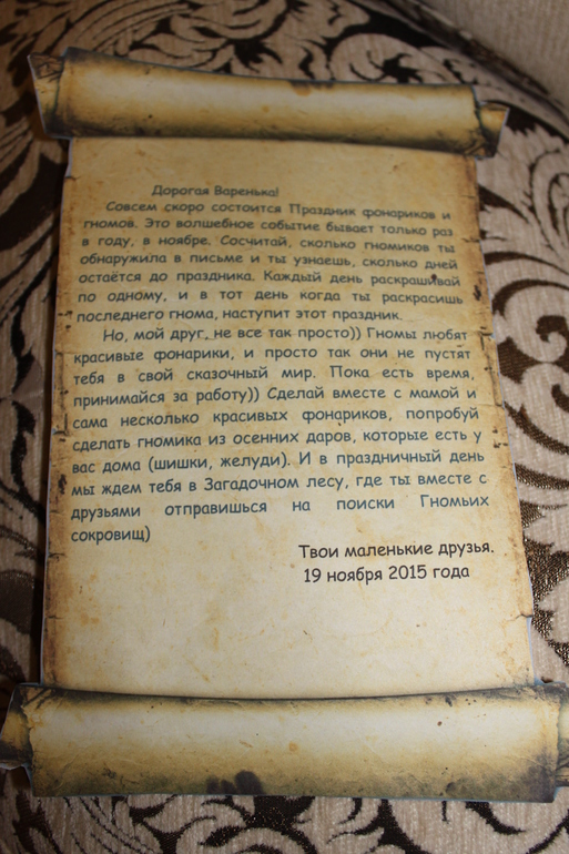Варя очень необычным способом раскрывала послание: сначала она вытащила гномиков из свитка.