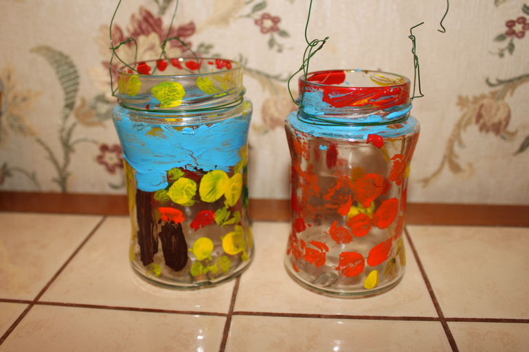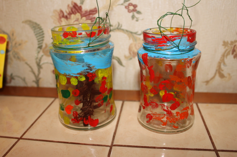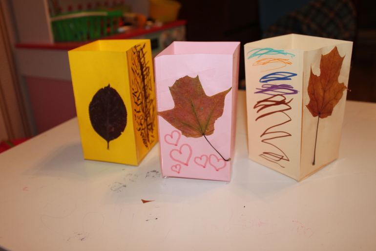 5. Неплохо украсить фонарики красивыми листочками, цветочками (на кальку), можно лист папоротника