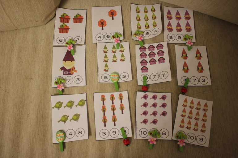Счёт (просто так Варе скучно считать) - впервые попробовали с прищепками