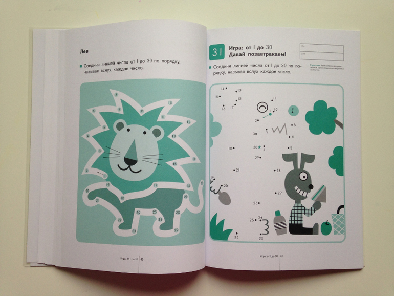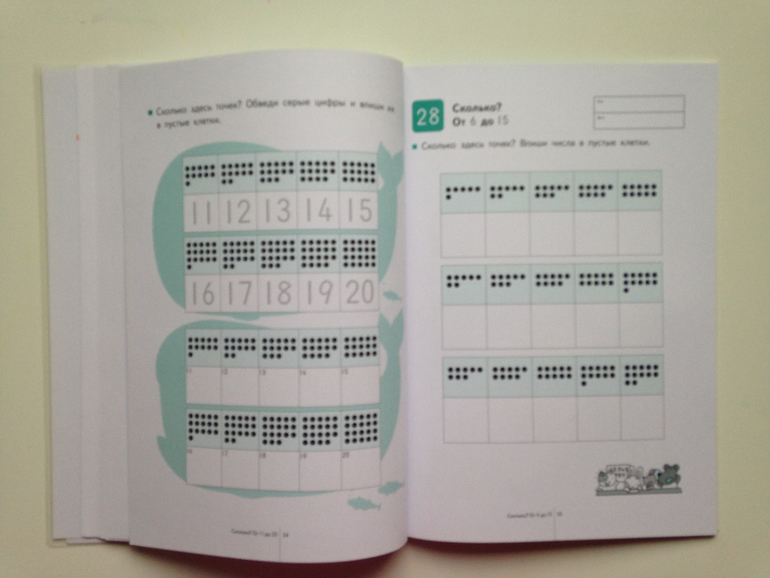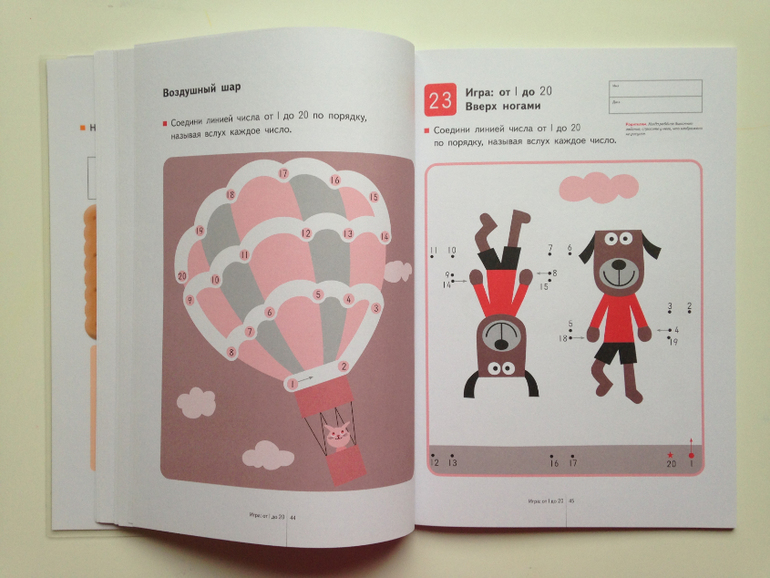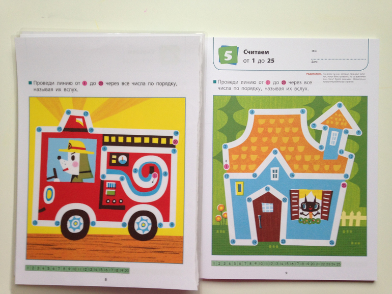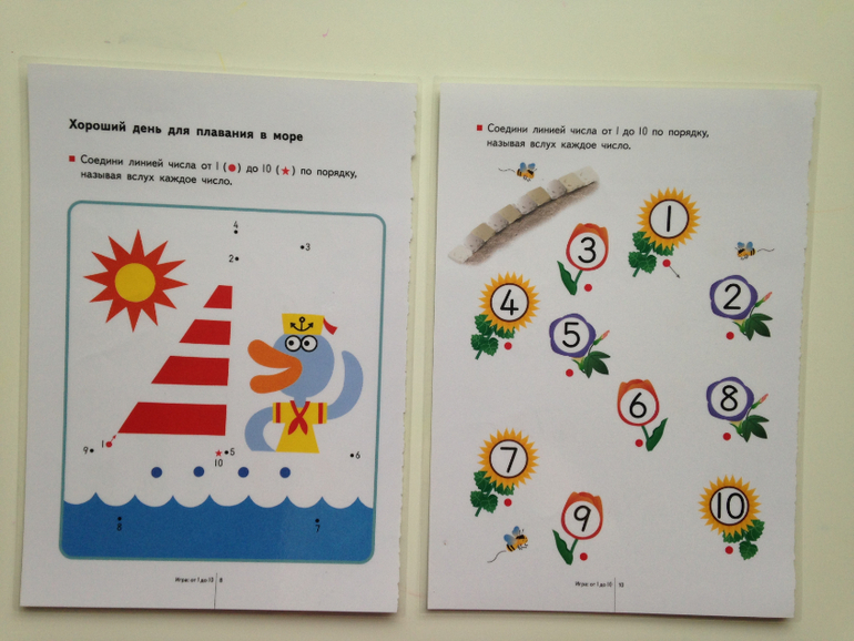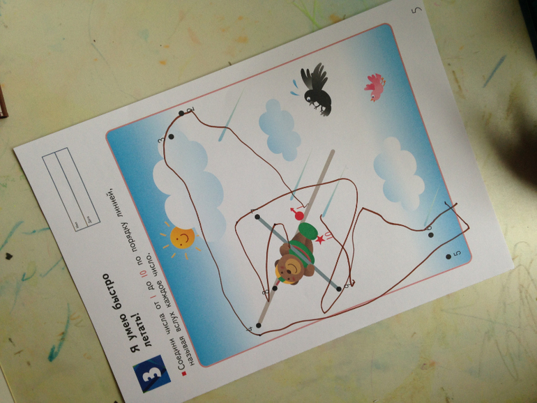 Вторая часть заданий посложнее, тут все опять очень быстро меняется. Несколько страничек, где нужно соединить от 1 до 10, а потом сразу до 15, 20 и так далее. Даже, учитывая то, что Дима вроде как понял как вести счет после "10" (кстати очень помогает адвент-календарь на декабрь, как от зубов до 31 теперь отскакивает)), соединить все красиво не получается.
