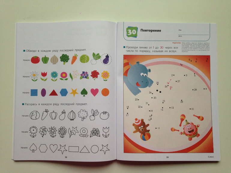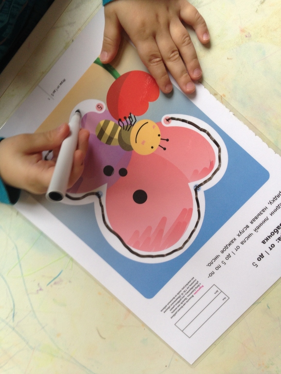 Приличная часть книги посвящена таким вот заданиям. С одной стороны это хорошо, но с другой, от страницы к странице все так стремительно меняется, что ребенку не успеть.