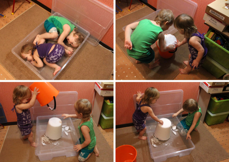 Для игры освободили самый большой контейнер, оба ребенка в нем отлично помещаются)))