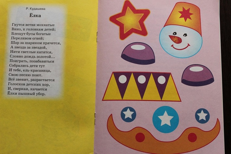Сначала в моей корзине оказалось три , в каждой - по четыре картинки и несколько стишков. Но, к сожалению, так вышло (точнее, так уж задумали издатели), что стишки были напечатаны на обороте листов с деталями для аппликаций. Поэтому мы сначала насытились праздничной поэзией, а потом нещадно ее покромсали.