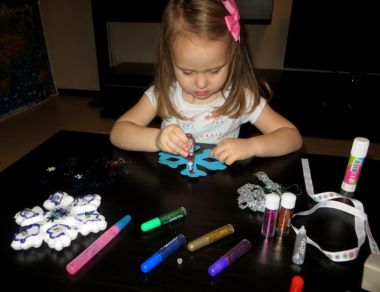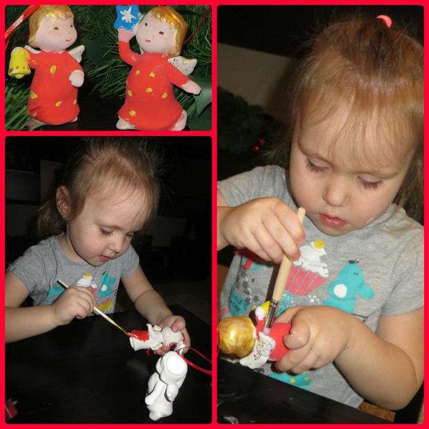 Сегодня, например, раскрашивали фигурки ангелочков. Замечательный набор. Мне очень понравился. Даже 3х-летний ребенок может справиться почти самостоятельно.