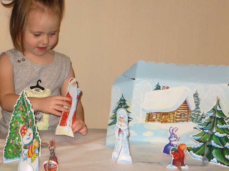 А каждый вечер у нас настольный театр. Причем, клеила его Яна сама. И сюжеты придумывает тоже сама.