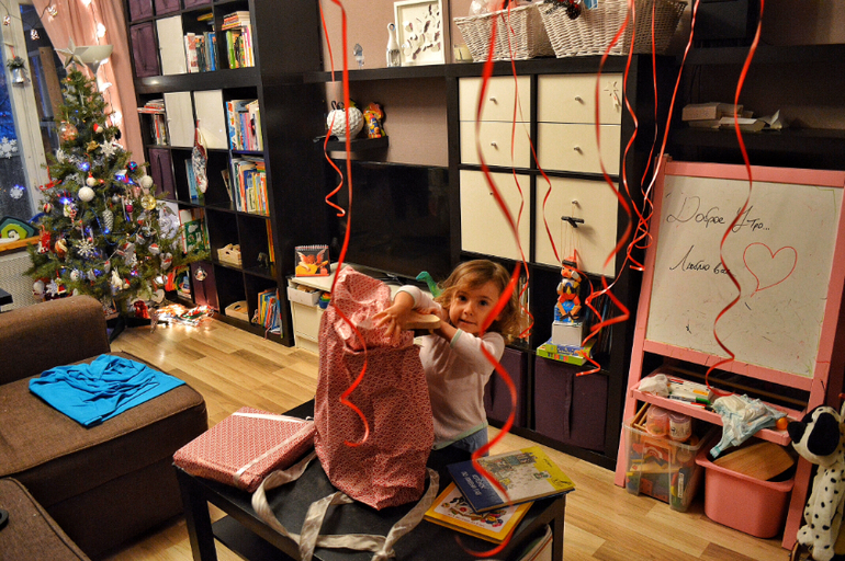 Утро началось с подарков. Наш папа задержался утром, и Дашуля принимала поздравления от обоих родителей 👨👩👧