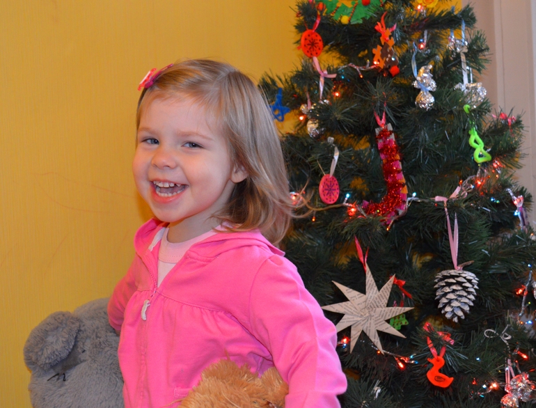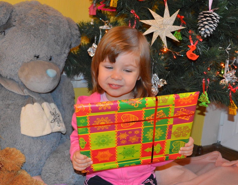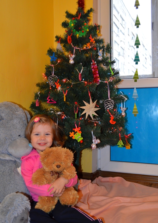 Традиционно для нашей семьи, елочку мы наряжали 19 декабря, в День Святого Николая, с самого утра. Я сказала Катюше, что сегодня праздник, и что как только мы нарядим елочку и включим огоньки гирлянды, под елочкой появится первый подарок от Деда Мороза. Не стала я в этом году путать ребенка наличием Николая, Санта-Клауса и Деда Мороза одновременно, только приносящих подарки в разные дни)))