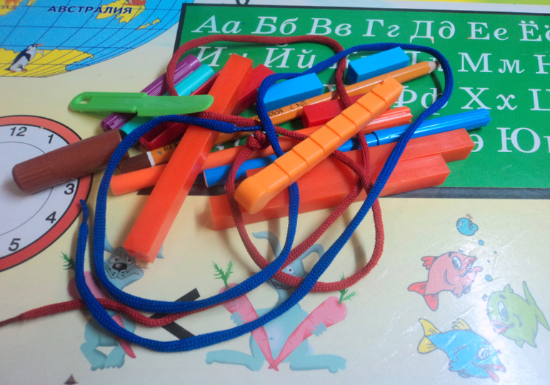 Дала ребенку длинные и короткие предметы, смешанные в одну кучу. Дочке необходимо разложить по 2 кучкам: короткие предметы и длинные.