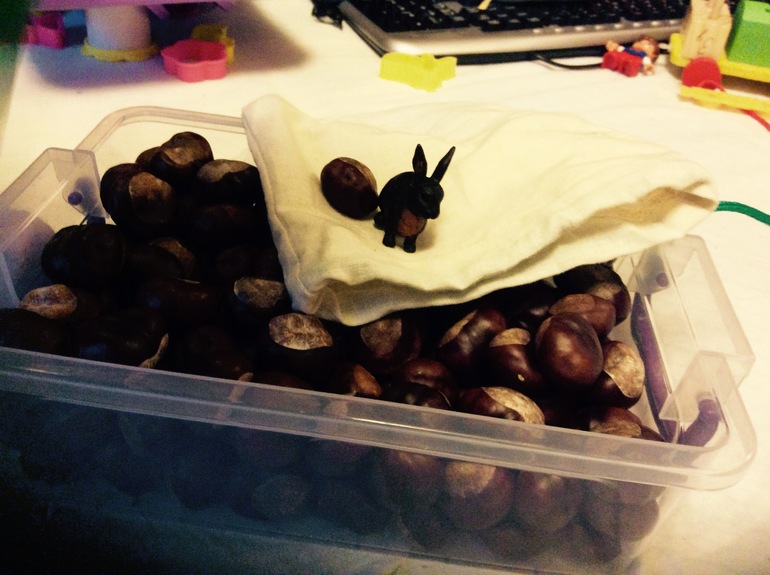 Кто заинтересовался играми и хочет что-то применить мой совет- не начинайте со всего сразу - главное постепенность! Дайте сначала ребёнку просто коробку скажем с каштанами и дайте ему поиграть с ними самому, как он умеет и хочет. НЕправильных игр НЕ бывает! Просмотрите что он делает, а во второй или третий раз предложите ему к примеру контейнер или мешочек для перекладывания, и так далее втягивайтесь постепенно усложняя задания. Не настаивайте, если ребёнок не хочет, объясняйте на своём примере и конечно просто играйте вместе!