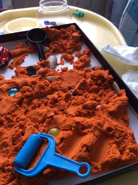 2. Куку: засыпаем и находим небольшую игрушку в крупе. Конечно радуемся и кричим куку, когда пропажа откопана. Вариант Ку-ку: наклеить на дно коробки наклейки и засыпать манкой. Ребенку можно дать толстую кисточку для "подметания" или просто ладошкой искать наклейки на дне.