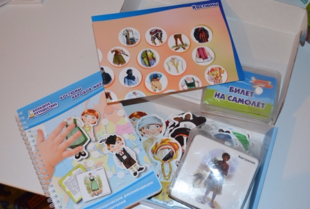 Увидев, маленькую коробку (а я себе представляла как минимум размера А4, а то и больше), я конечно же разочаровалась, НО, увидев содержимое, всё стало на свои места. Красочные магнитные костюмы, подробная методичка для родителей, билеты на самолет с заданиями - АБСОЛЮТНО ВСЁ в замечательном исполнении!!!