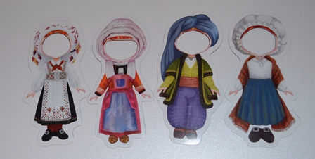 На обороте карты мира есть своеобразная игра, где изображены только некоторые элементы всех костюмов. Играть можно даже если ваш ребенок знаком еще не со всеми костюмами: функция поиска отрабатывается на все 100%.
