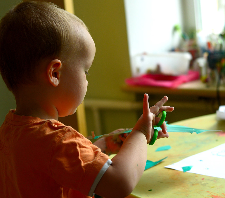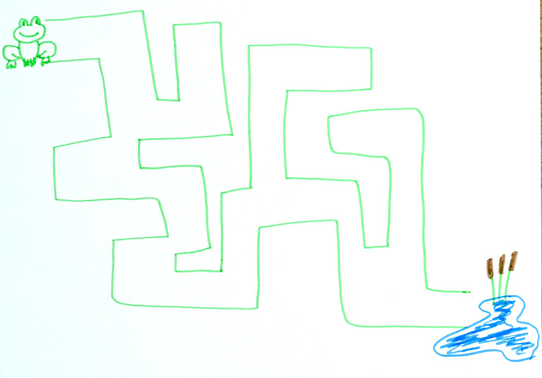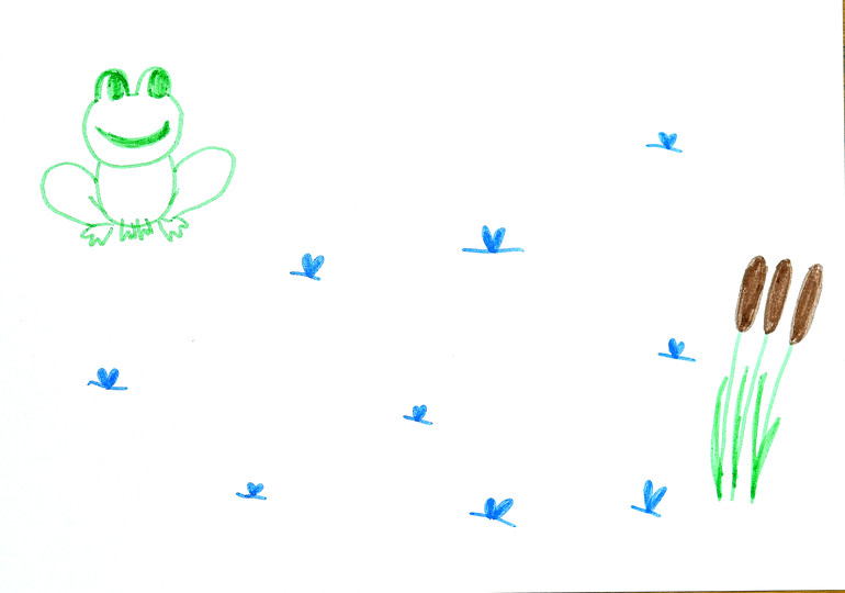 Прячем комариков от лягушки - по плану было залепливать их кусочками пластилина. Обычно Максим очень любит такие задания, но сегодня захотел прятать их под листиками. Вырезал из картона и приклеивал. У нас сейчас огромный интерес к ножницам, режем что то почти каждый день.