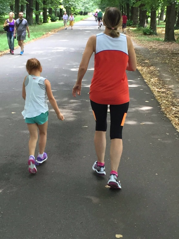 Ещё подумала , что в следующий раз будем бегать по боковым незаасфальтированным дорожкам, чтобы все-таки ребёнку меньше нагрузки на суставы были.