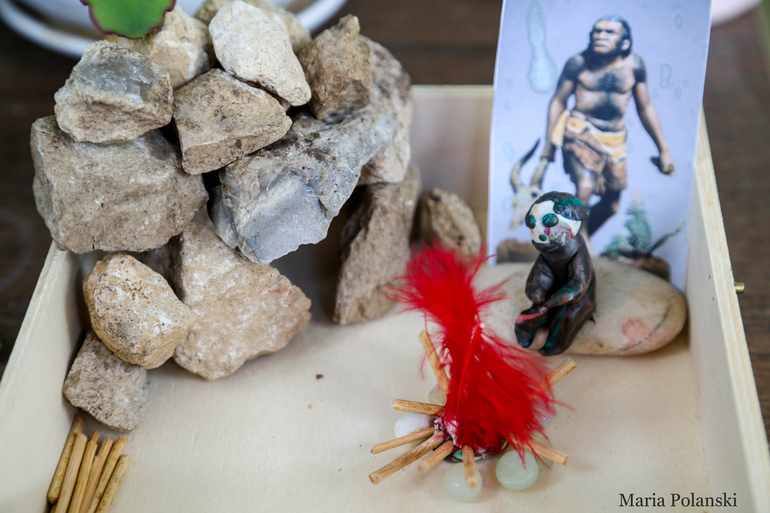 6. Где-то у нас еще был день по приручению волка, который стал первой собакой, но фото нету) Я рассказывала историю в этот день и мы ходили гулять с нашей фигуркой волка, которая теперь поселилась около пещеры неандертальца. А потом мы занялись приручением других животных)