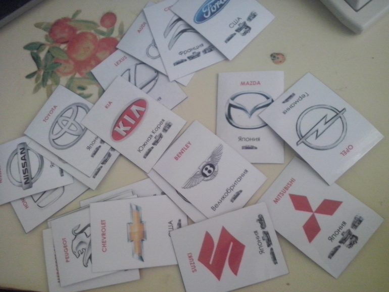 У нас вот такие карточки от umnitsaco. С удовольствием учим марки машин. Даже девочкам это полезно. На обратной стороне интересности про автомобильные марки, производителя. Как придумали эмблему, что обозначает, какие цвета характерны для этой марки. Даже есть задания - игры. Жаль только, что не все марки машин есть в комплекте.