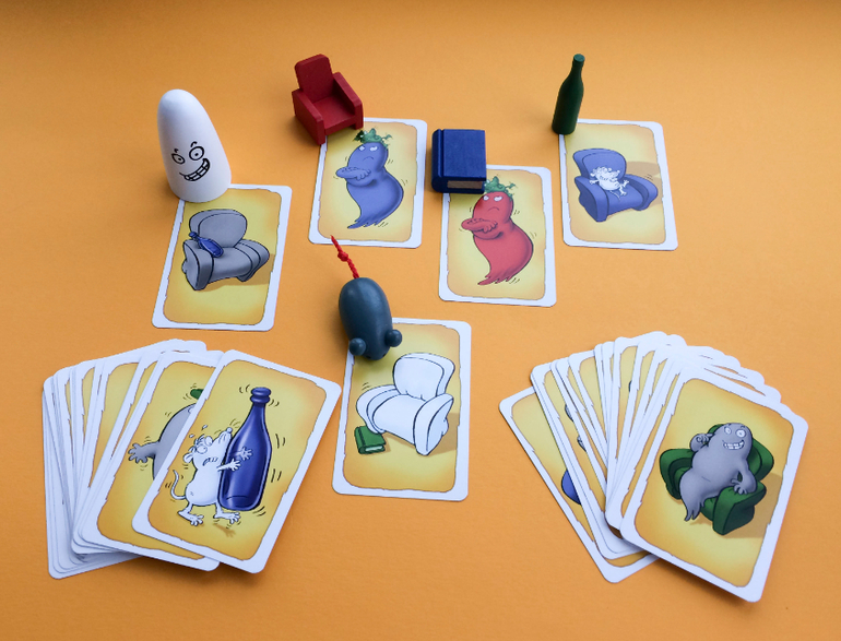 "Когда ведущий выкладывает, например, карту с красным креслом и белой бутылкой, понятно, что нужно срочно схватить кресло - цвет и предмет совпадают. Кто первым схватил, забирает себе карту.