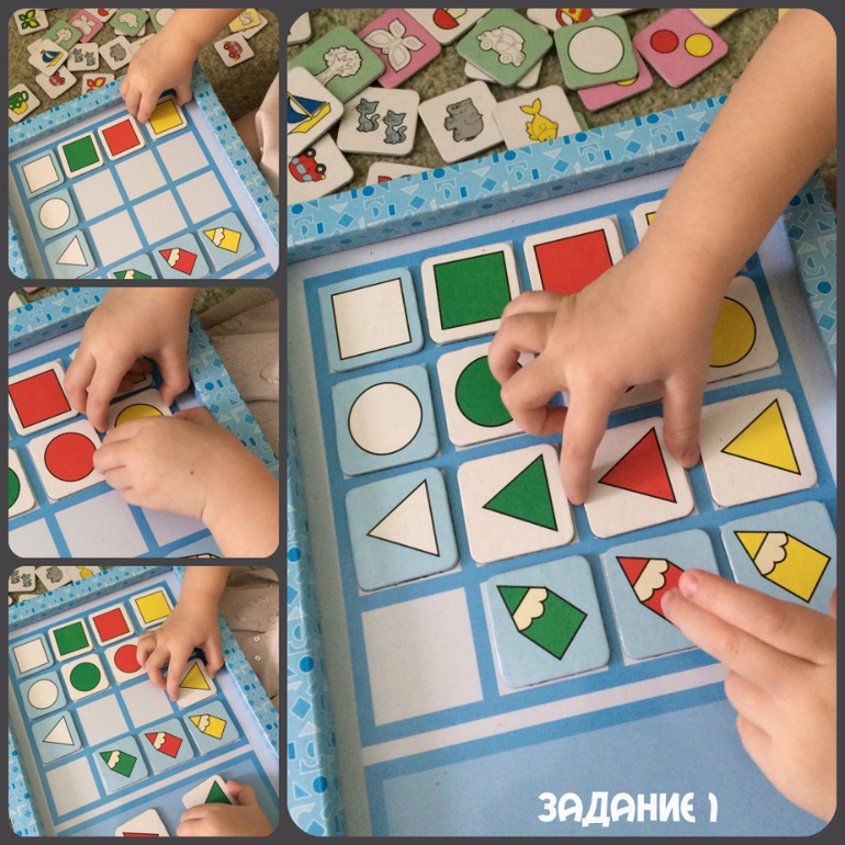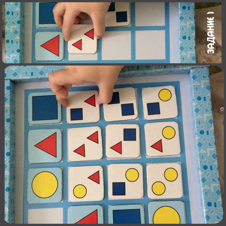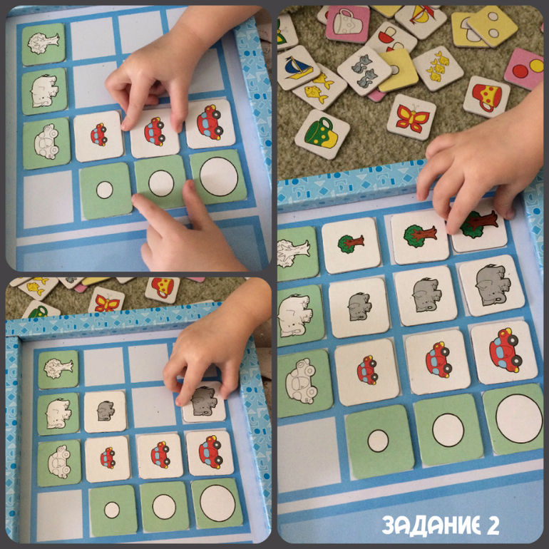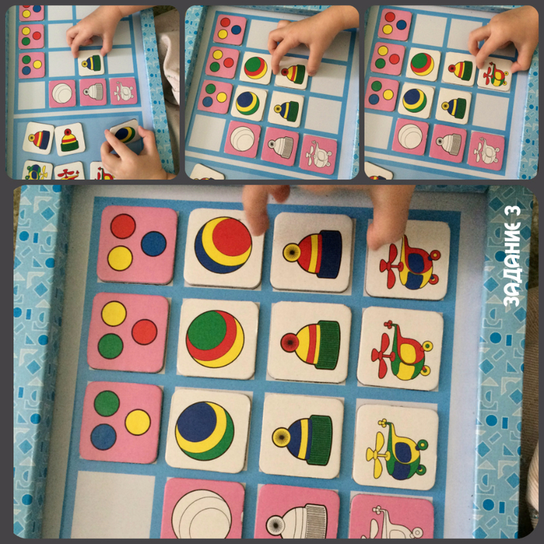 Следующее задание относится к узнаванию формы (тени предмета) и соответствию размеров предмета. Это задание уже немного посложнее, но все еще вполне 2,5+.