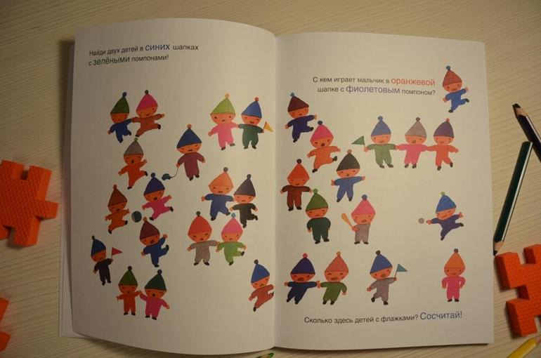 Но эта тетрадь совсем другая. Это сборник игр (я назвала бы из даже заданиями). Для решения поставленных задач малышу (а, возможно, и родителям) необходимо приложить внимание, смекалку и фантазию! Под каждый сюжет отдан один разворот. И именно под сюжет, т.к. есть развороты с несколькими заданиями, но одного направления.