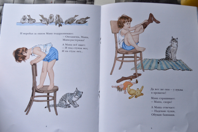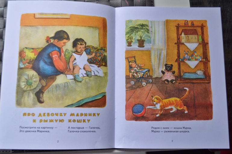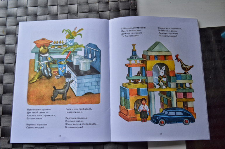 Чудесные коротенькие стишки о девочке Маринке, которые многие помнят. Но книга запоминается в большей степени своими иллюстрациями, которые разглядывать можно бесконечно , придумывая новые и новые истории.