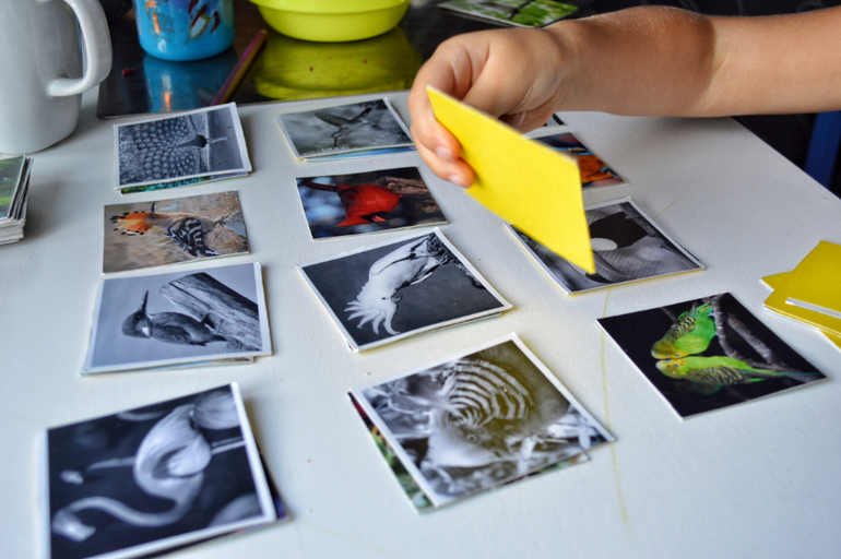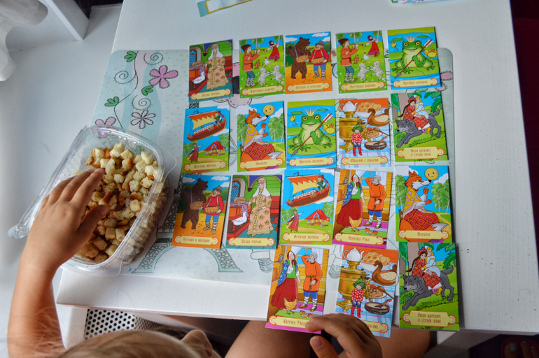 Иногда играем в мемо по правилам. Открываем по очереди))