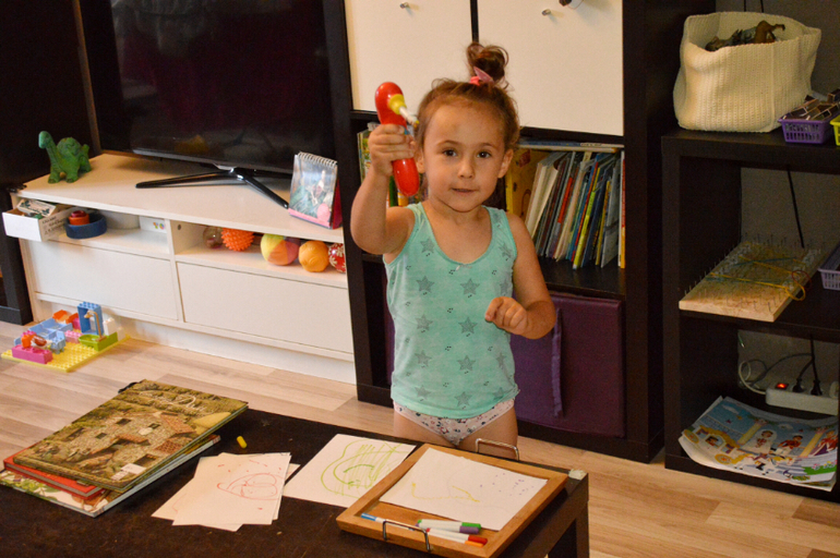 Эта забавная штука, которая рисует пружинки уже фигурировала в постах. Развлечение, которое Дашуля очень любит.