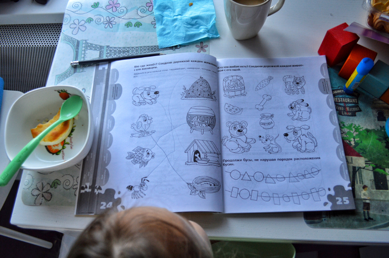 И ещё задания для самостоятельной работы. Здесь ребёнок сам может посчитать, потренировать логические мышление, руку, просто поразвлекаться.