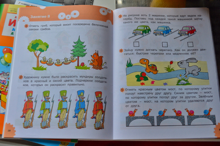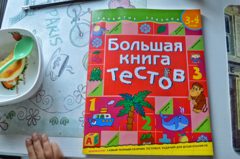 Коротко напишу о части наших тестиков. Этот сборник подарила нам бабушка. Издательство Росмен. Отличное ч/б издание, разнообразные задания на логику, математические навыки, графику. В принципе смысл всех подобных сборников одинаковый. Но заданий здесь много, так что хватит надолго. Дэрья, например не делает повторно задания из таких сборников.