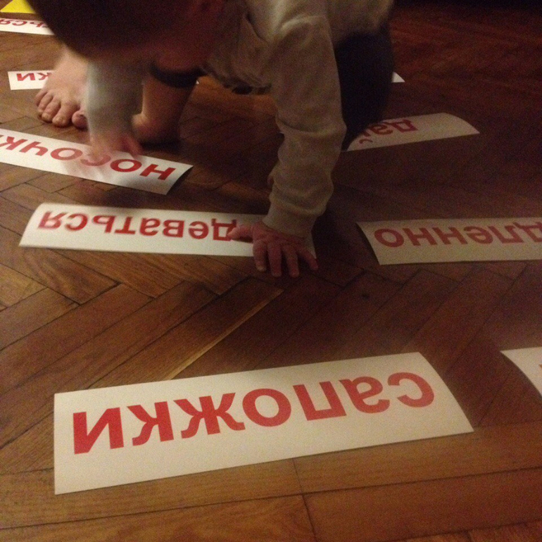 Развитие от 9-12 месяцевИ снова про наш любимый чемоданчик "Чтение с пелёнок". Именно с него начался наш путь по раннему развитию) Начали изучать словосочетания. Так как словосочетания из знакомых нам слов, Мирослав их узнал, очень обрадовался) На такой позитивной ноте, решила устроить проверялочку. Месяцев в 7 последний раз проверяла. Просила взять в ручку слово "сапожки", он брал именно "сапожки", просила взять "носочки", взял "носочки". Всего 8 из 8) Сын до сих пор помнит эти слова, хотя мы их давно прошли. Память мы точно развиваем) Изначально, у меня была идея по карточкам попрыгать, или пошагать, но сын решил по-другому, просто ползал по ним, брал в руки одну любую и долго рассматривал, водил пальчиком. А когда я произносила слово на карточке, он мне отвечал "КА", мы так всегда называем карточки, любые, хоть слова, хоть цвета, даже книжки так называем) А словосочетания нам пришлось смотреть из маминых рук. Только так он их не отбирал и мог полностью рассмотреть этот дуэт из двух слов. Попрыгать по ним ещё успеем)