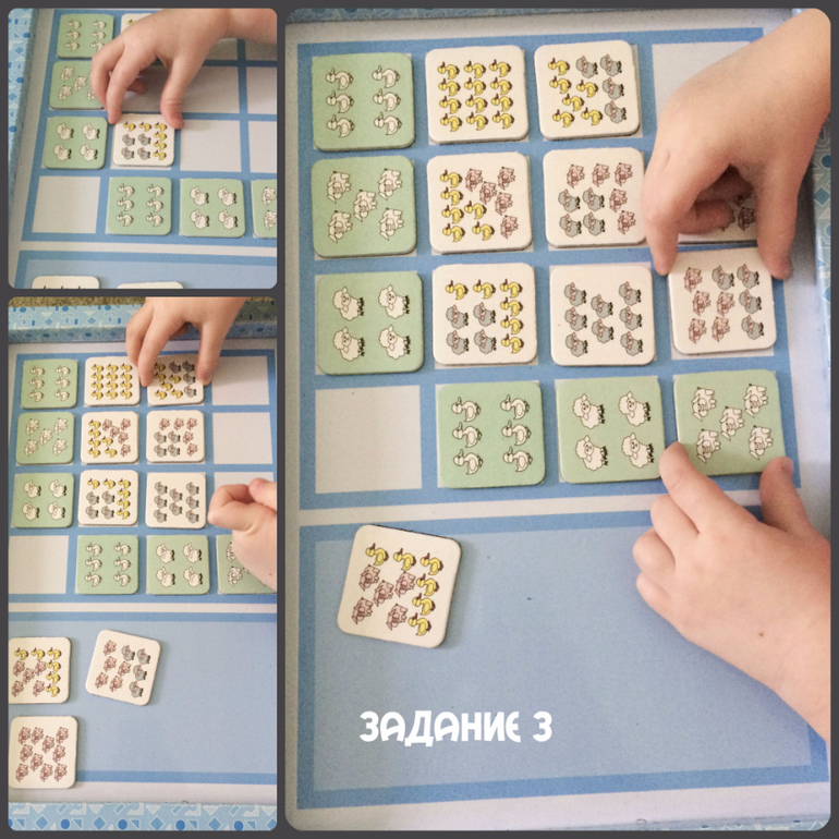 Задание 3. Вот тут достаточно мелковато и надо следить за изображениями. Нет, само оно не особенно сложнее задания с грушами-яблоками-лимонами из 4+, но. Но. Думаю, ровно в 3 года я бы не настаивала на прохождении, в отличие от 3,5))