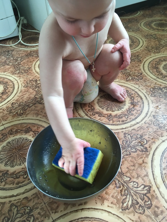 Разное (если затрудняетесь с выбором)Мой енотик-полоскун) Мирослав очень любит воду, с купанием у нас никогда проблем не было. Любит душ, я его переворачиваю вверх и мы устраиваем "фонтан". Это, кстати новое слово сына, правда звучит оно "Какбан"))) Мирослав всегда старается "помочь" мне мыть посуду. И вот в один такой раз, я дала ему чистую губку и налила в миску воды (немного, что бы потопа не было) Мммм, я спокойно вымыла посуду, а сын с таким увлечение макал и выжимал губку. Мой новый лайфхак)