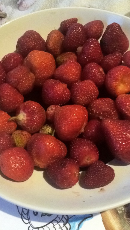 А еще в этот день мы обрабатывали купленную клубнику: хвостики отрывать оказалось не так-то просто ручкам Малышки.
