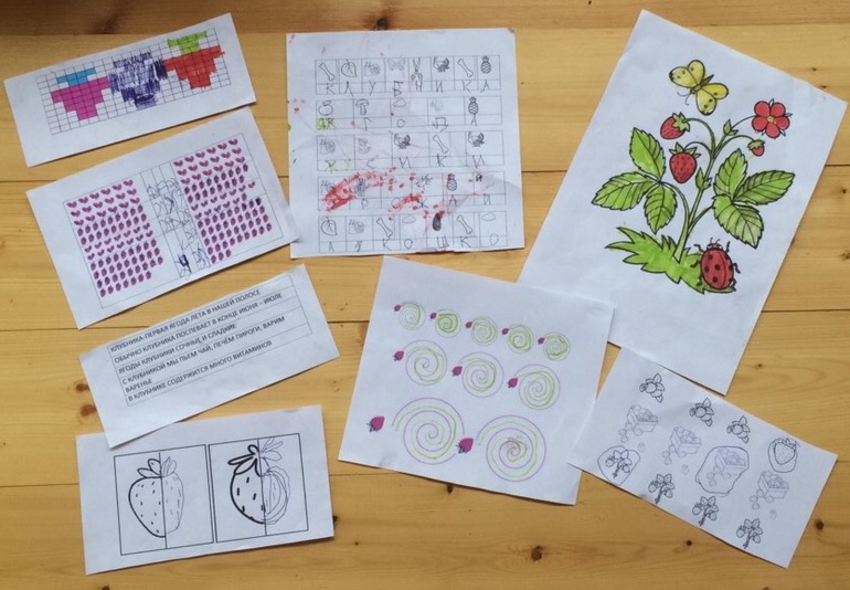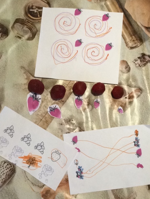 Малышка искала отличия, раскладывала по размеру (и ягоды и картинки), тренировала руку к письму