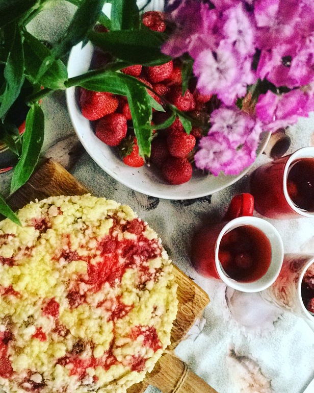 Мы решили, что надо для насала тспечь пирог с клубникой. И клубничный чай. Вот что вышло