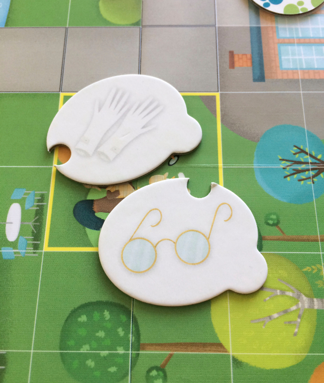 Конечно, взрослые или дети постарше легко в логические рассуждения добавят и эти предметы, но мы после нескольких игр решили откидывать в сброс не-улики, дабы не путать ребенка.