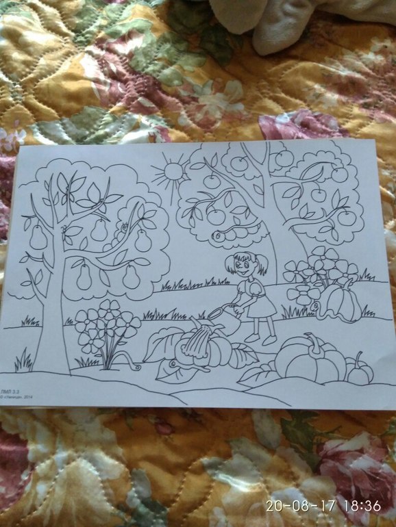 Много играли по играм из методичек: отгадывали загадки, раскрашивала плоды на рабочем поле "сад" и считала, каких фруктов больше, искала насекомых-вредителей..
