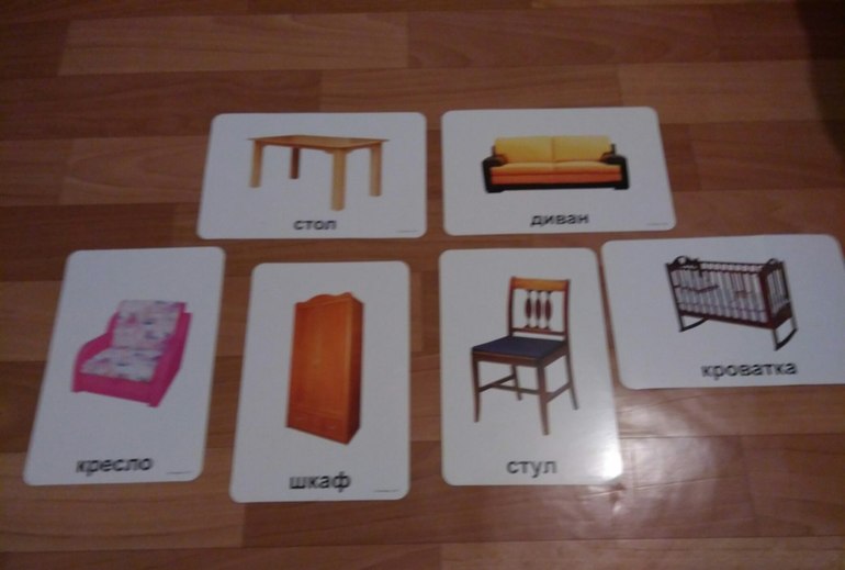 Потом мама мяукала и гавкала, от чего Гошка пришел в неописуемый восторг))) Иногда представляю, как выгляжу я со стороны во время наших игр с младшим, и мне становится еще веселее. Слава Богу, муж уже привык к нашим эмоциональным занятиям .. Так вот после игр с Гошей не стала убирать далеко карточки и приготовила несколько игр для Славушки. Начали с сортировки. Перемешала несколько тем (одежда, продукты, мебель, животные) и попросила ее сначала принести мне все карточки с изображением продуктов, потом все - с мебелью и т.д.