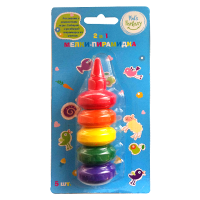 Второй наборчик мелков из Fix Price. Это мелки-пирамидка, очень забавные. Немного жестковаты, но для развлечения за их стоимость очень даже хороши. Их в пирамидку можно собирать-разбирать, и на палец надевать, и в ручке держать малышу удобно, чтобы калякать. Кстати, у них есть аналог (или это как раз аналог))) не помню какой фирмы - на Вайлдбериез цена что-то около тысячи рэ.