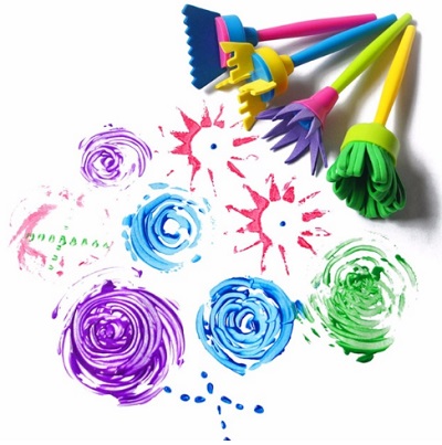 Вот такие фигурные кисти (ссылка) - вообще хит. Они маленькие, как раз для ручек малышей. Ими очень здорово рисовать разные цветочки, фейерверки и тп. И тоже цена просто смешная на али.