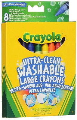 Обычно Марго всё же рисует восковыми мелками и в специально выделенном для этого месте. У нас в ходу два набора. Первые - Crayola, ультра-смываемые. Пока, действительно, смывались и стирались ото всюду без проблем. Рисуют хорошо, нареканий не вызывают. Покупала в "Эльдорадо", там сейчас их уже, к сожалению, нет(((.