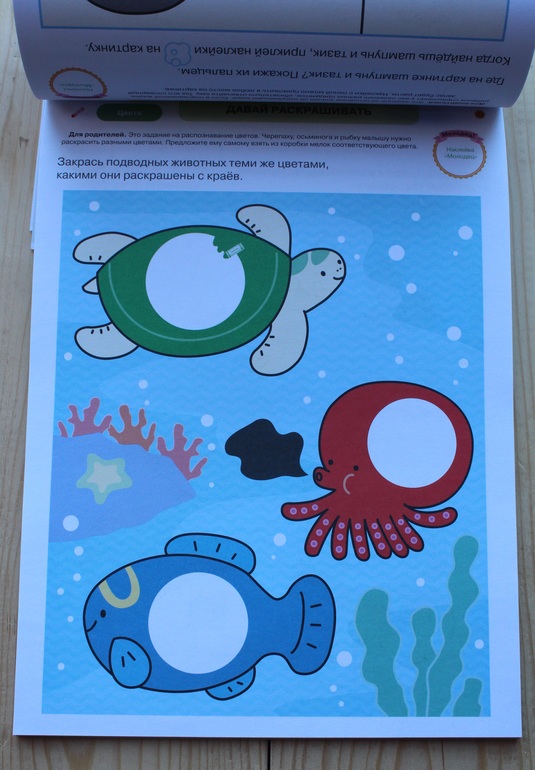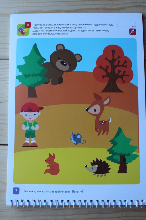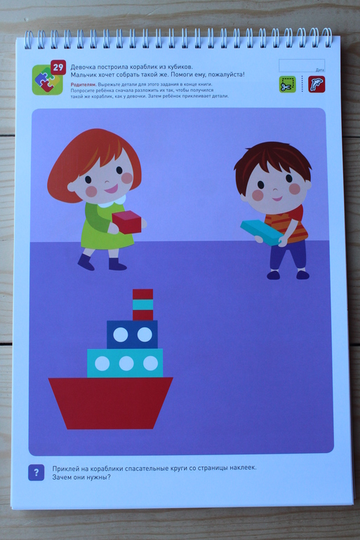 Также есть задания с приклеиванием наклеек, аппликациями, конструированием...